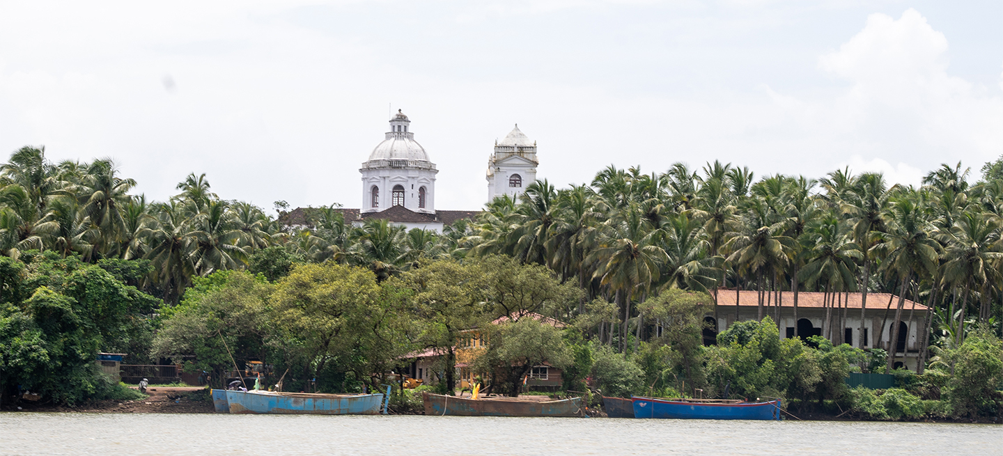 Take a moment to experience the calm of Goa haloed by the sky, dotted with seagulls and boats in the distance. Here, you can see in the distance, the top portions of the St. Cajetan Church, the ruins of St. Augustine and Se Cathedral.